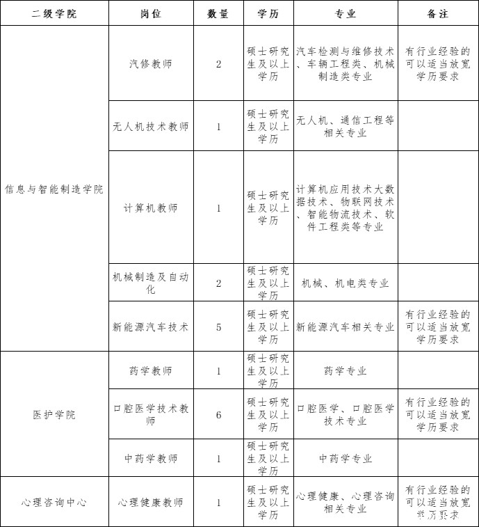 (四)有高职、中职教育教学经历者优先,有相关专业行业、企业经历者优先,有中级以上职称者优先。